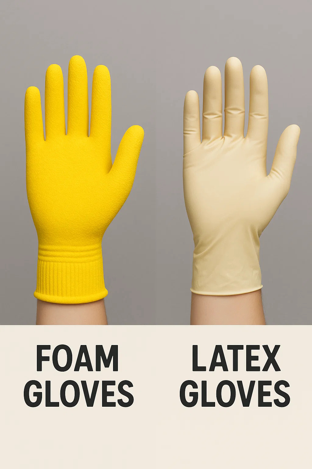 Istilah "sarung tangan buih" dan "sarung tangan lateks" merujuk kepada produk yang berbeza dengan bahan, struktur, dan kegunaan yang berbeza. Inilah kerosakan yang jelas: